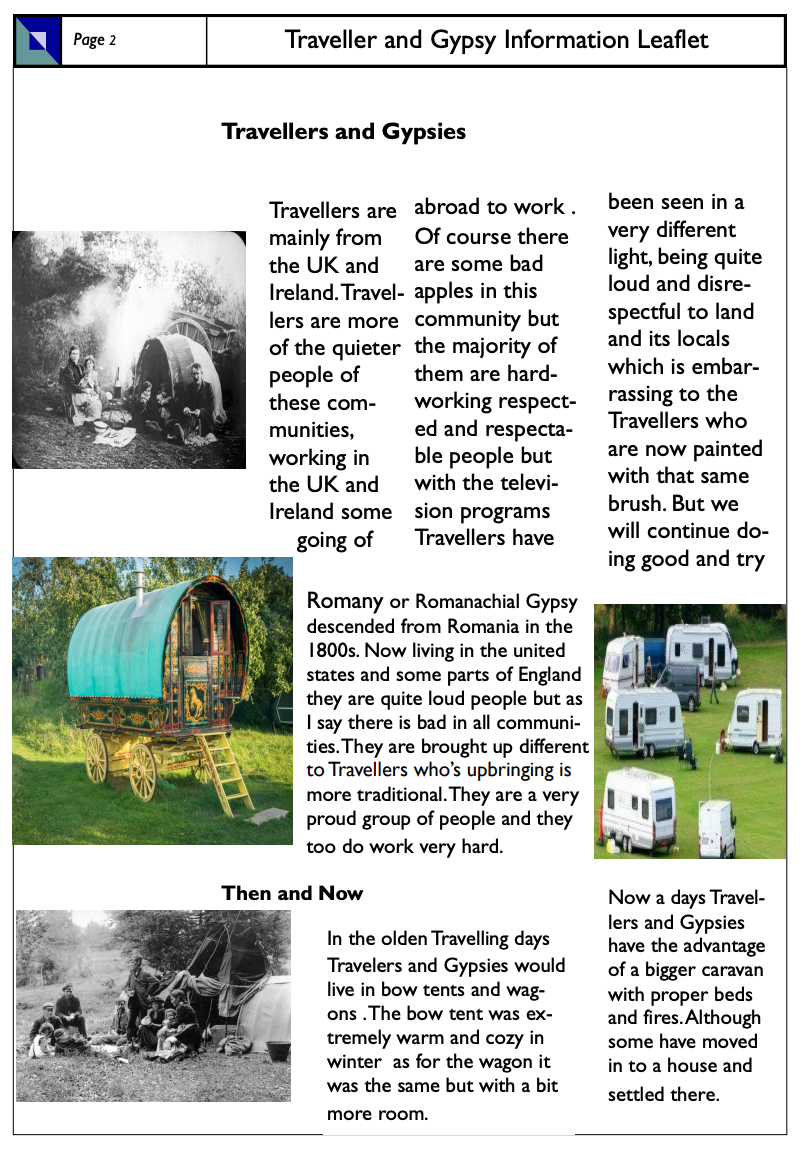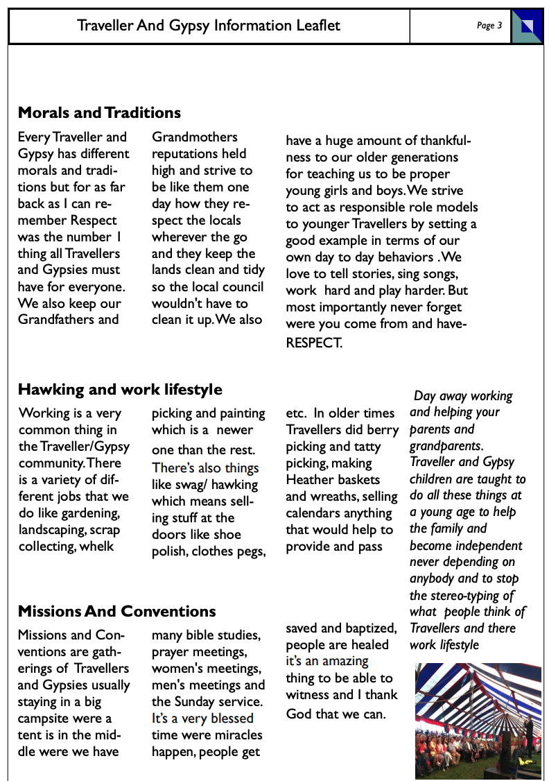 Information leaflet created by a young Traveller
